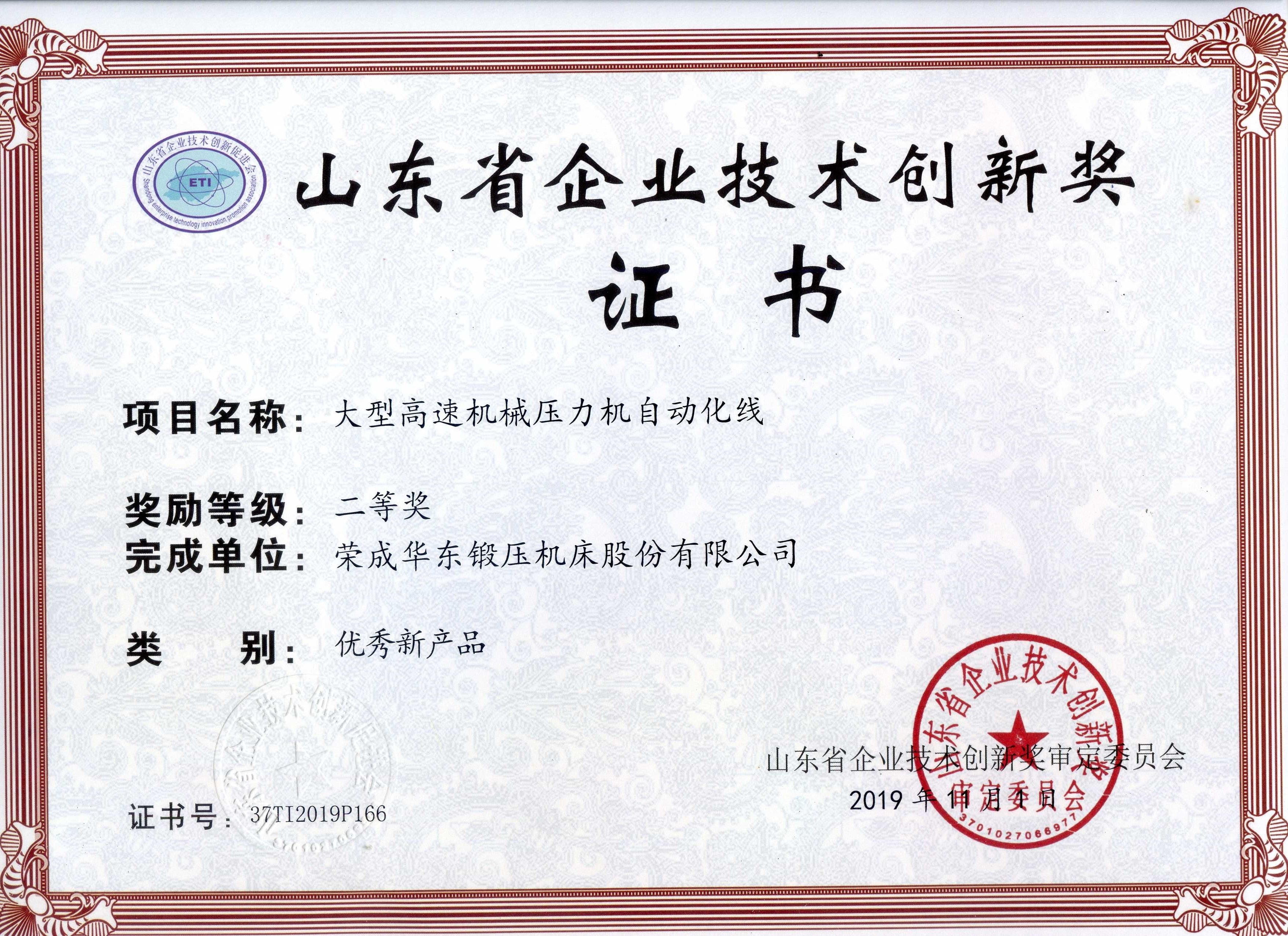 山东省企业技术创新奖-乘用车轮辐闭式单点压力机生产线