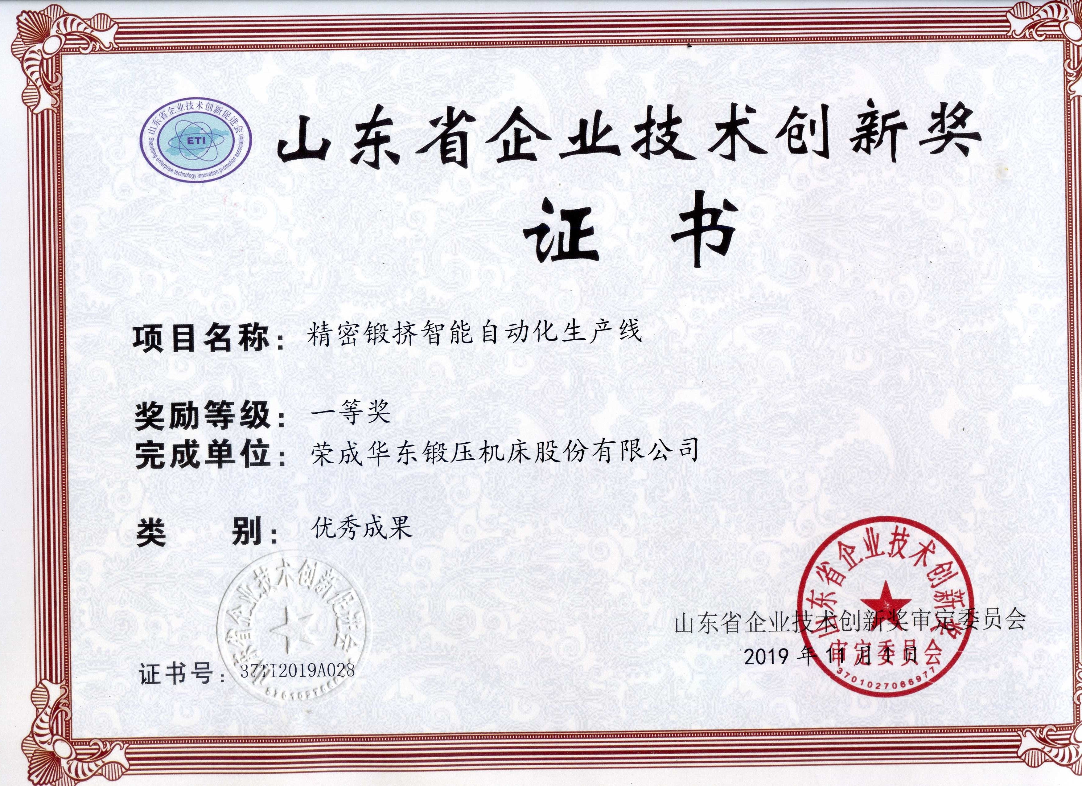山东省企业技术创新奖-大型高速机械压力机自动化线